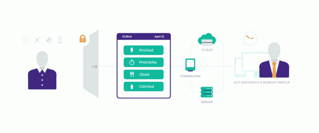 Systém je modulárny, dá sa ľubovoľne kombinovať a upravovať na mieru podľa požiadaviek konkrétnej firmy. Keďže kombinuje dochádzkový a prístupový systém, šetrí tak prostriedky, ktoré by inak museli byť vynaložené na implementáciu a prevádzku dvoch rôznych systémov. Dochádzkový systém v cloude je prehľadný a intuitívne prostredie zaručuje rýchle uvedenie do prevádzky. Administrácia je možná odkiaľkoľvek, keďže na to stačí internetový prehliadač. Je možné nastaviť neobmedzené množstvo administrátorov s rôznymi prístupovými právami. Definovanie vlastných výnimiek a udalostí podľa potreby je samozrejmosťou. Biometrické terminály sú moderné prístroje s rýchlym dvojjadrovým procesorom, voliteľnými Wi-Fi či 3G modulmi a vlastnou vstavanou batériou.